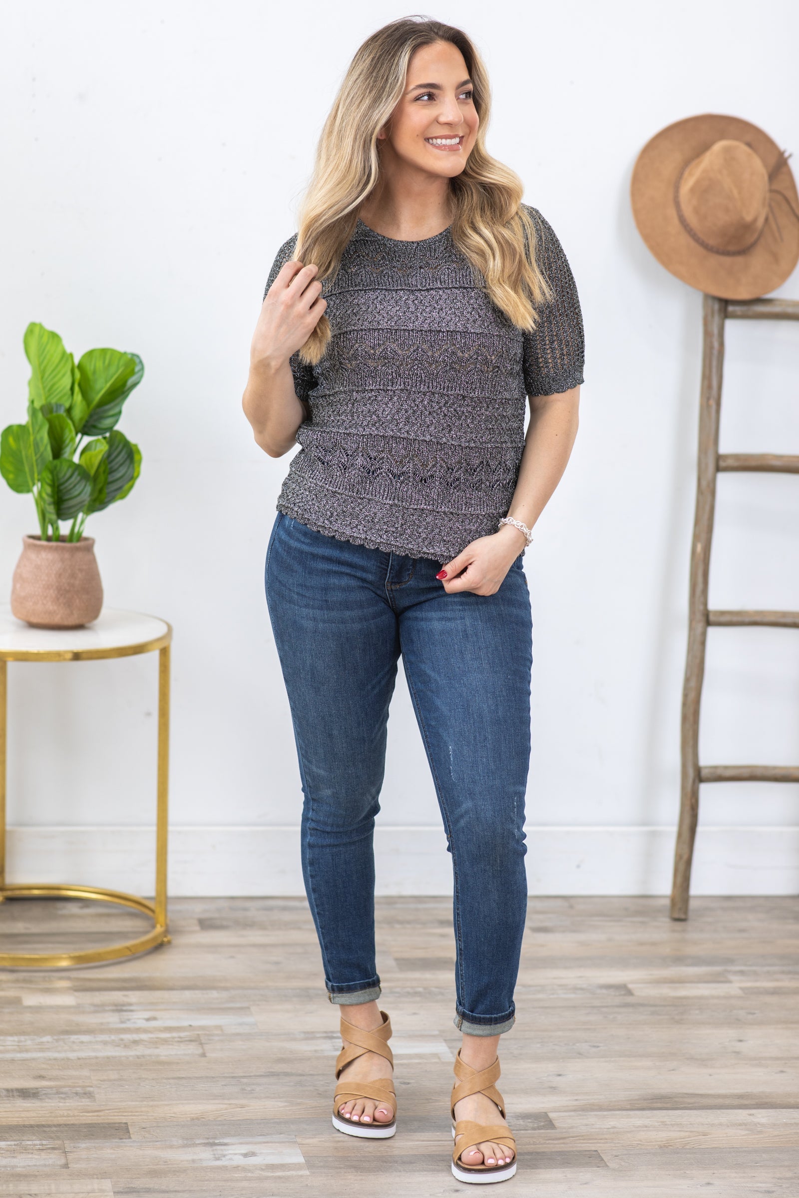 Black And Silver Lurex Sweater Knit Top
