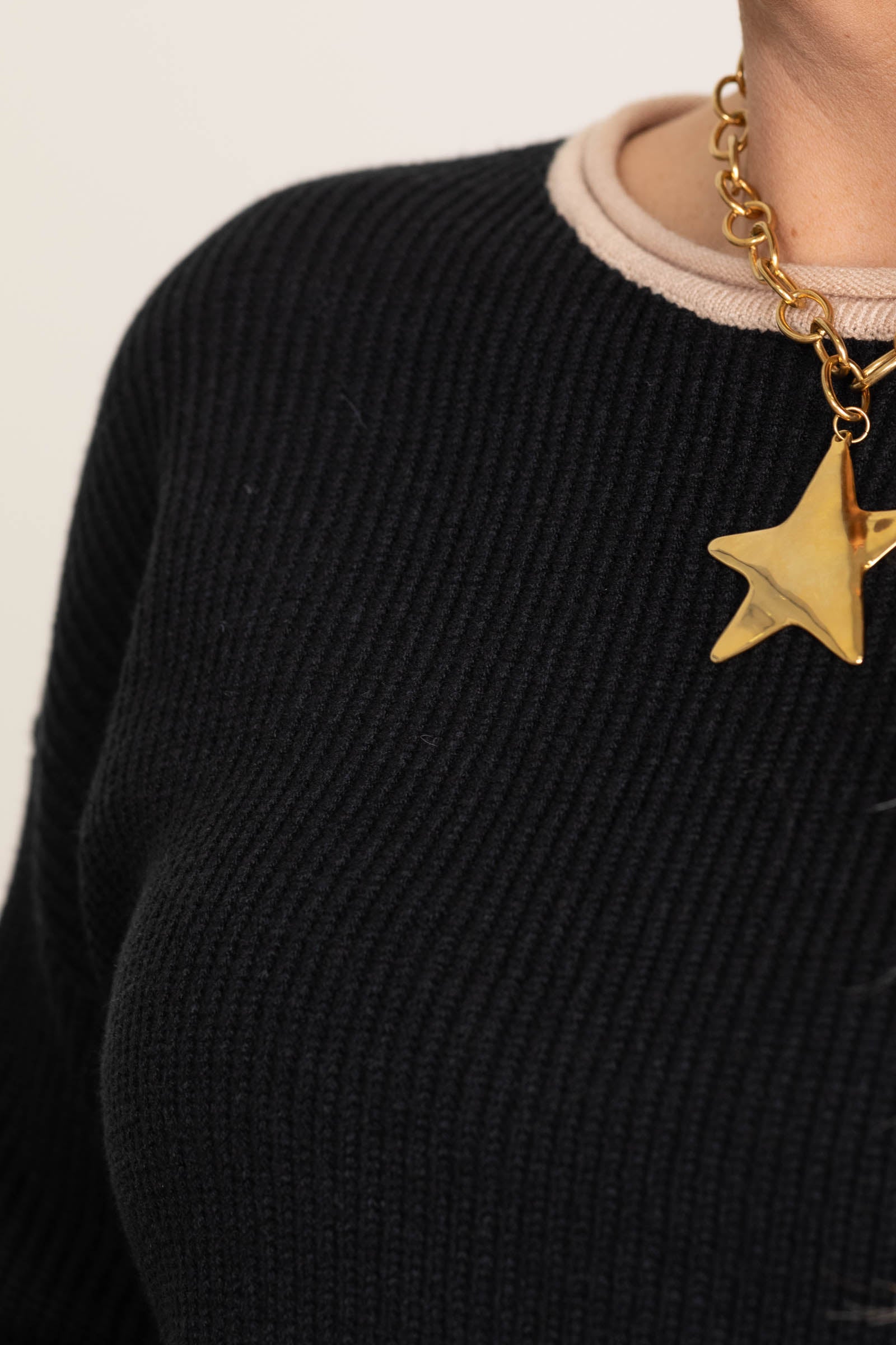 Black Contrast Scallop Trim Pullover Sweater