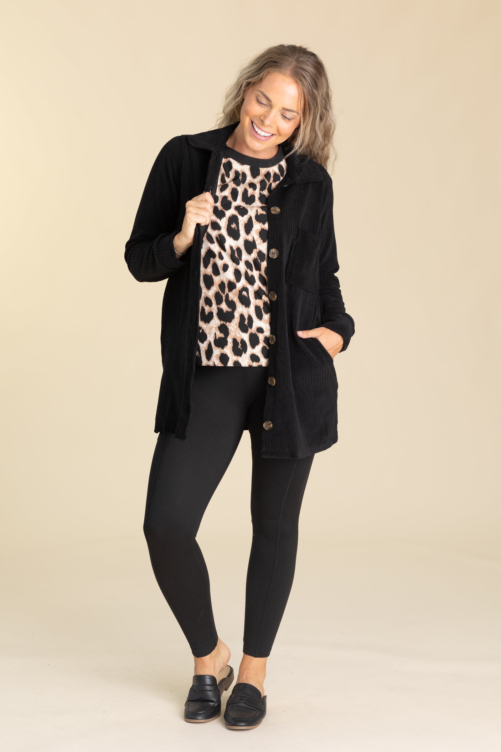 Black Corduroy Ribbed Shacket With Pockets