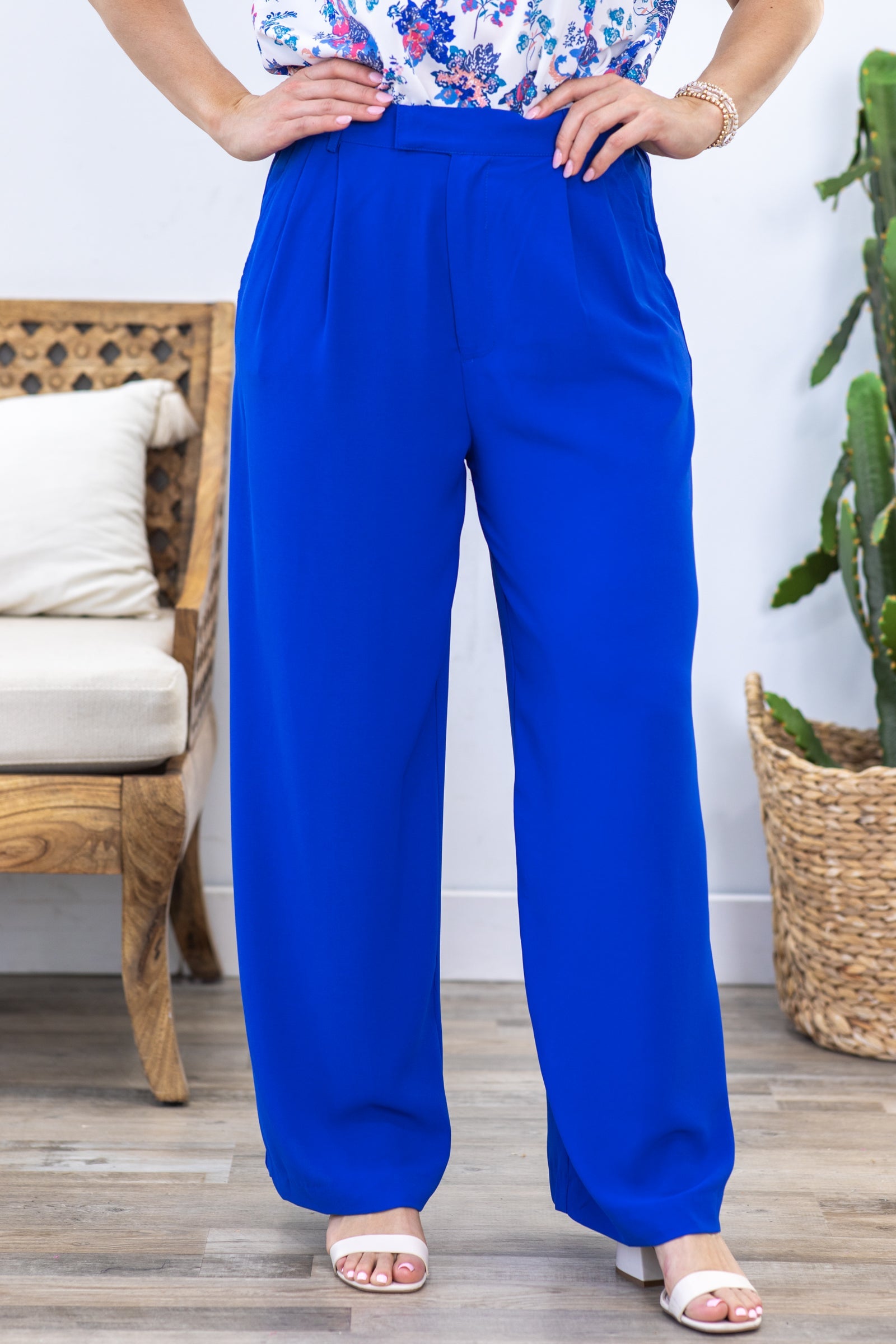 Blue Wide Leg Woven Trouser Pants