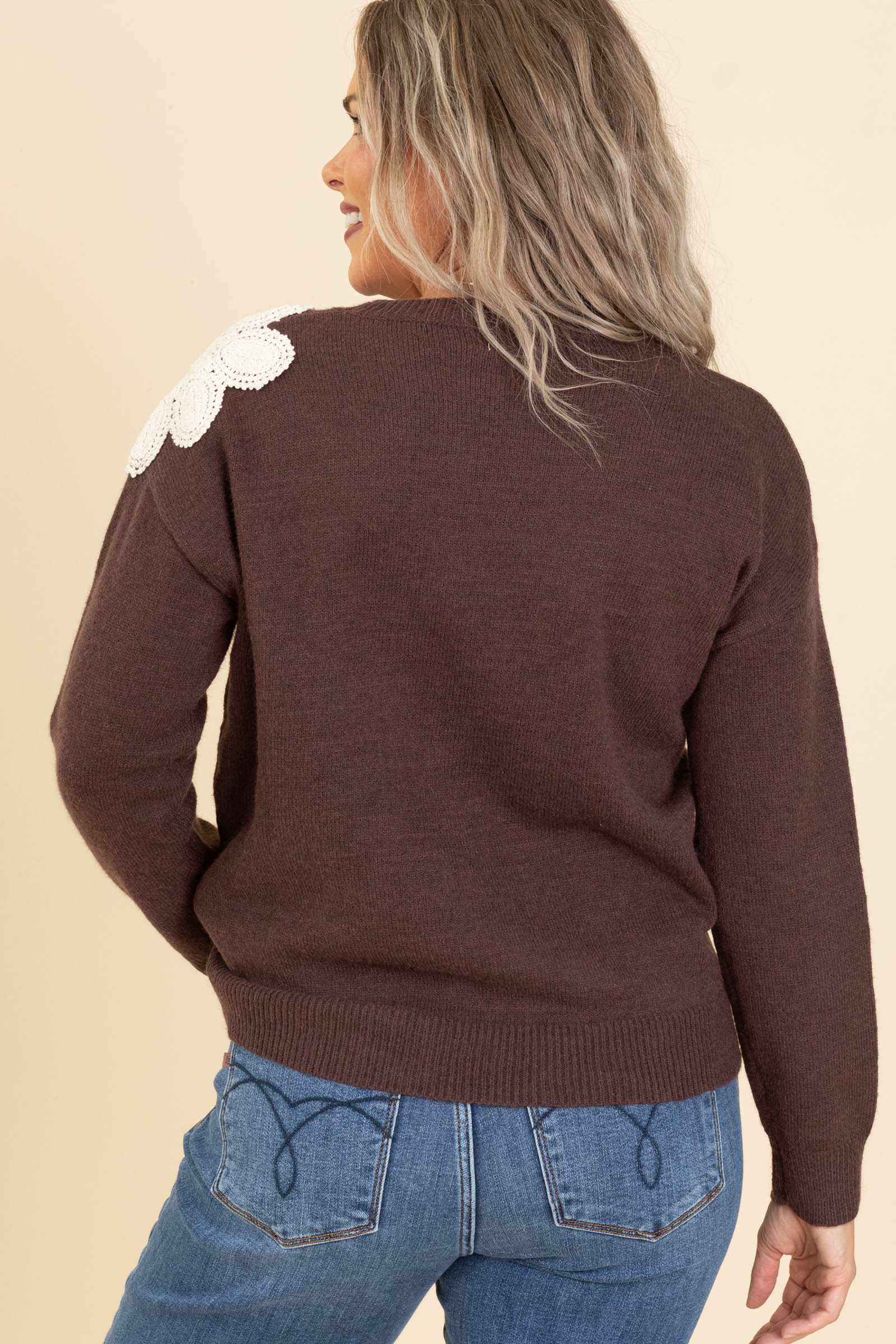 Brown With Crochet Florals Sweater