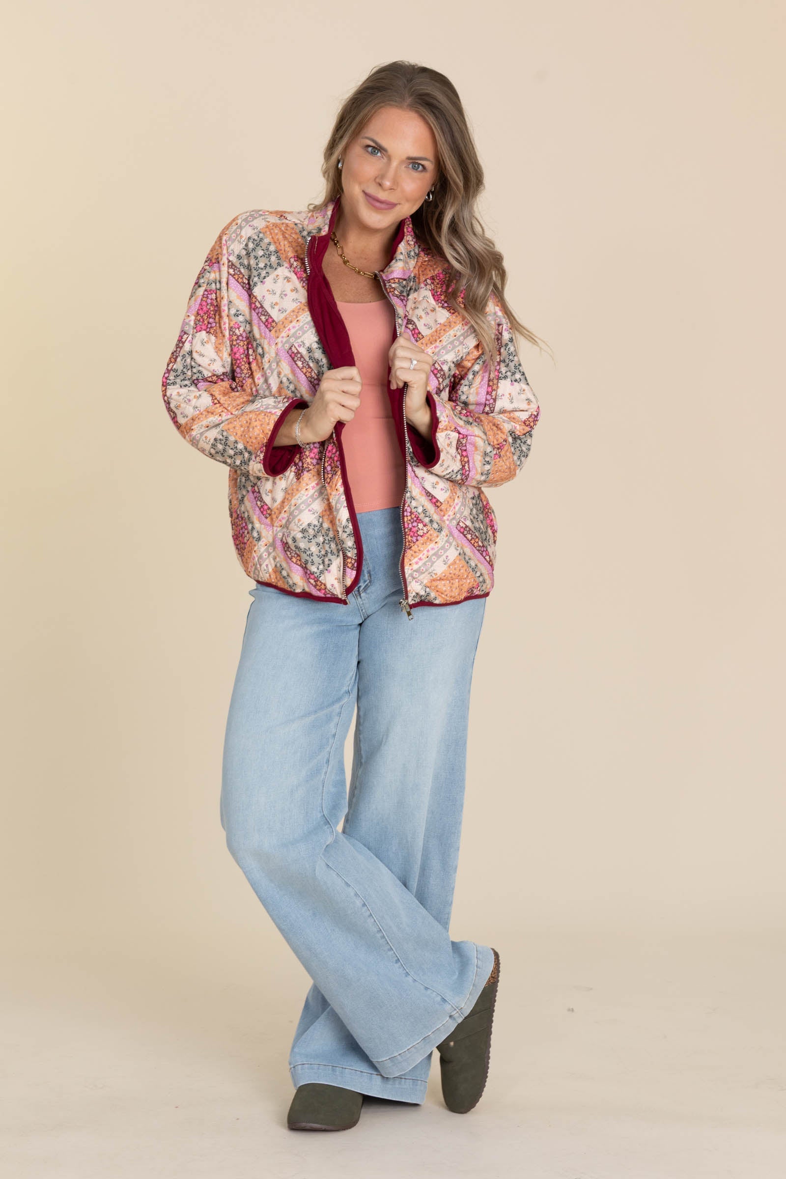 Burgundy Patch Print Light Padded Jacket