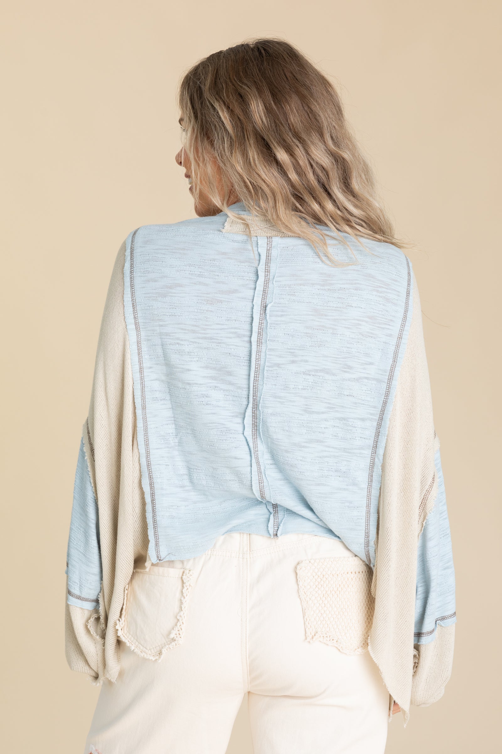 Contrast Balloon Long Sleeve Raw Edge Knit Top