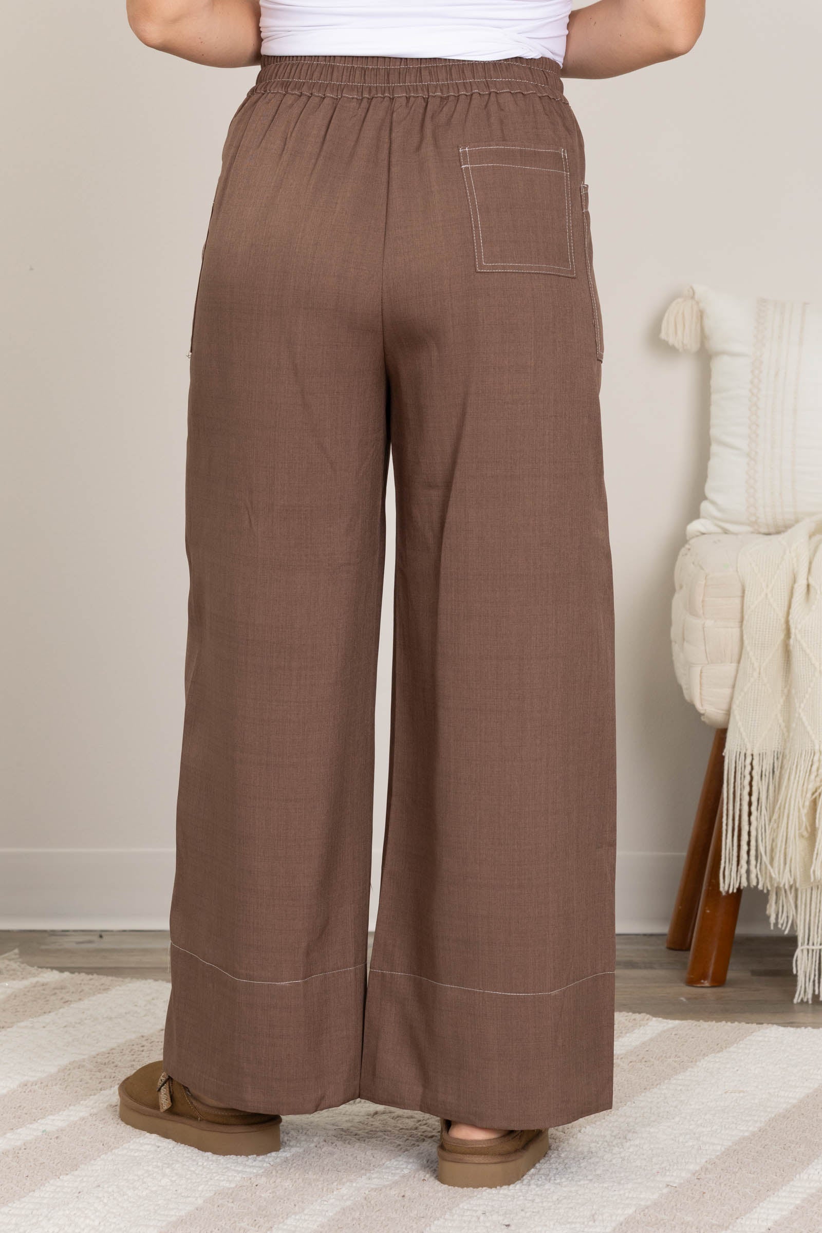 Contrast Stitch Elastic Waist Wide Leg Pants