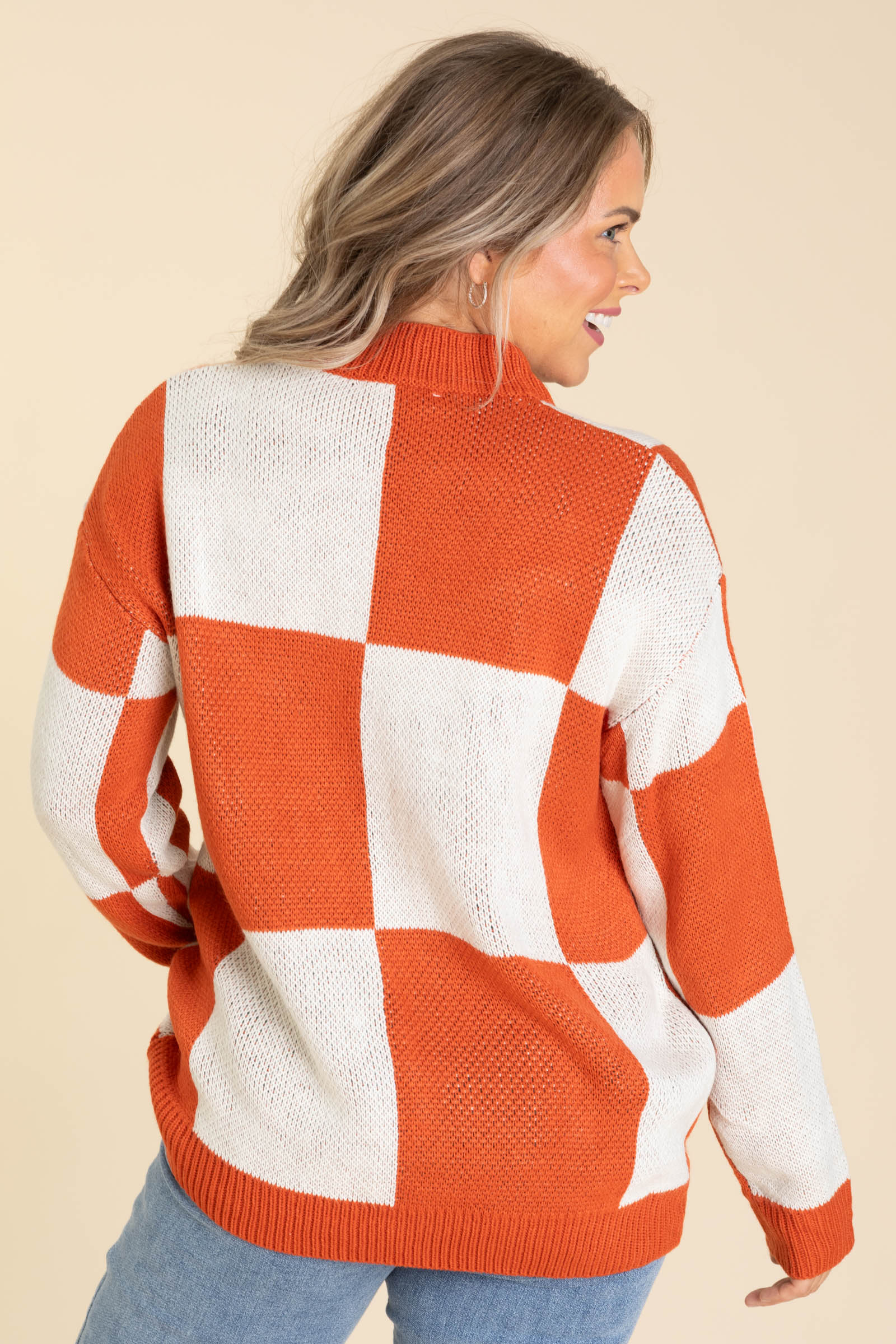 Dark Orange Checker Pumpkin Sweater
