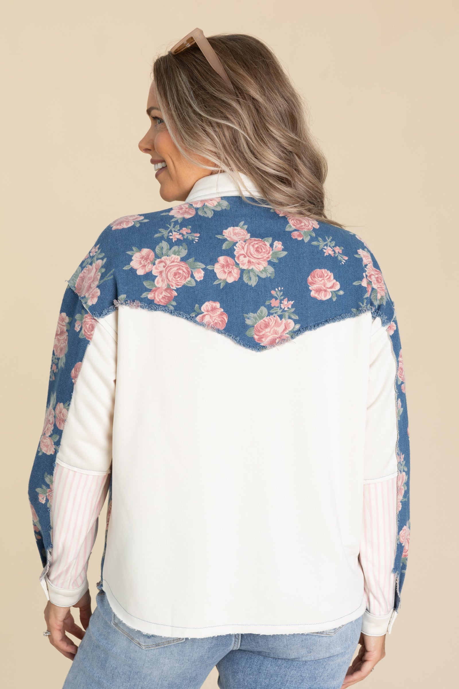 - Print: Floral/Denim