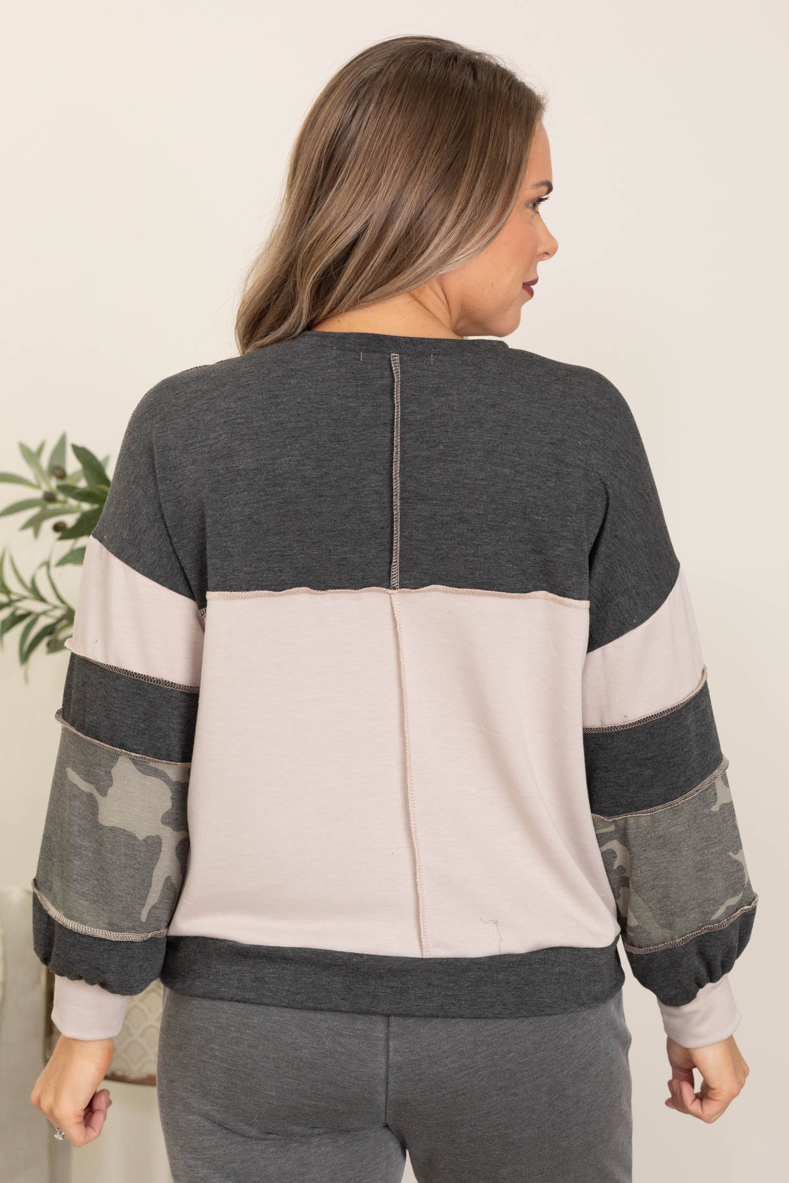 Dusty Beige And Olive Camo Loose Fit Knit Top