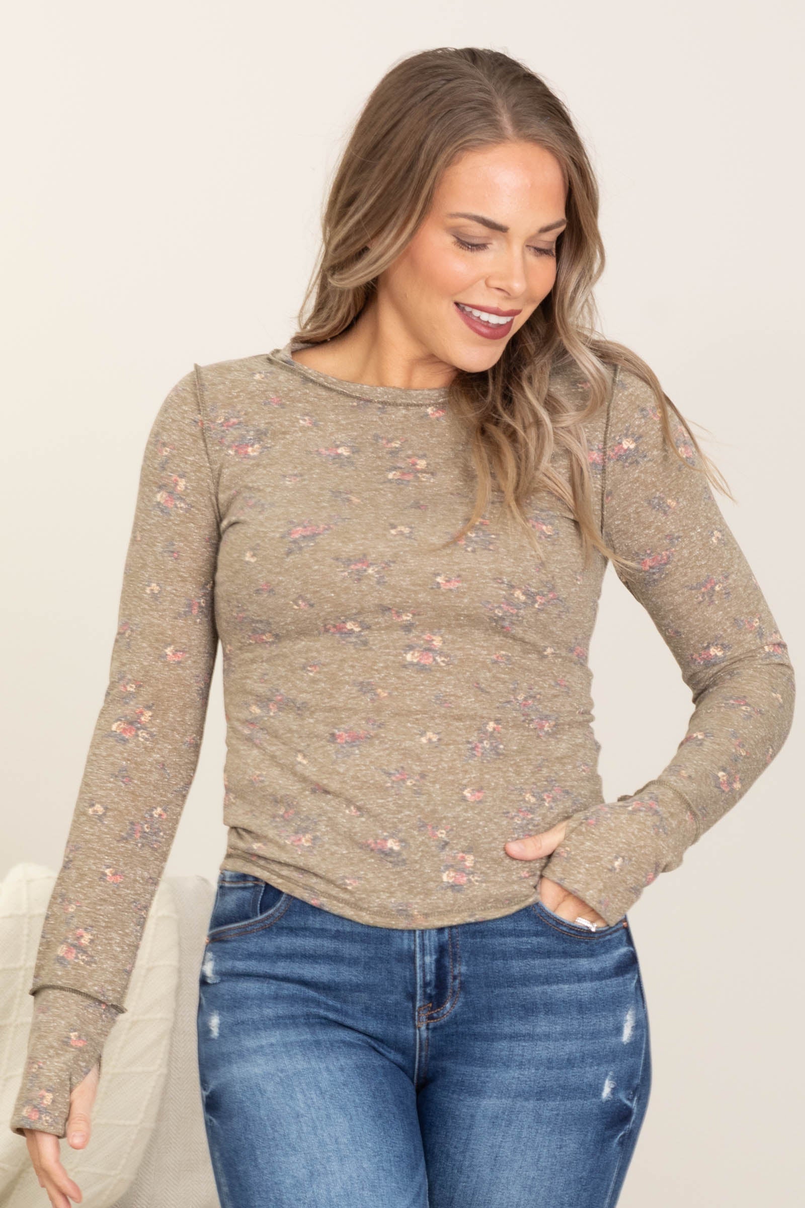 Dusty Olive Floral Knit Thumbhole Long Sleeve