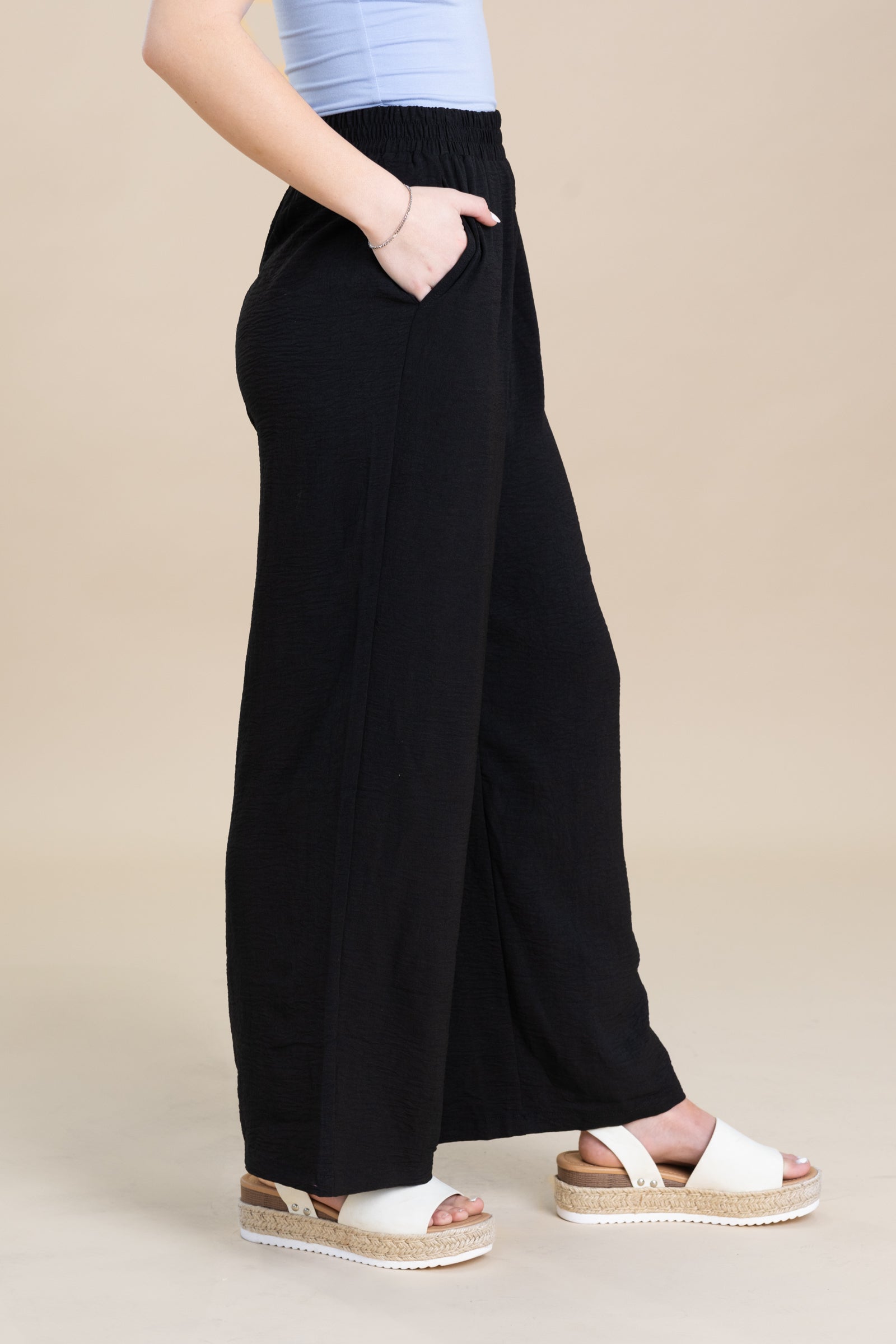 Elastic Waist Wide Leg Pants With Pockets