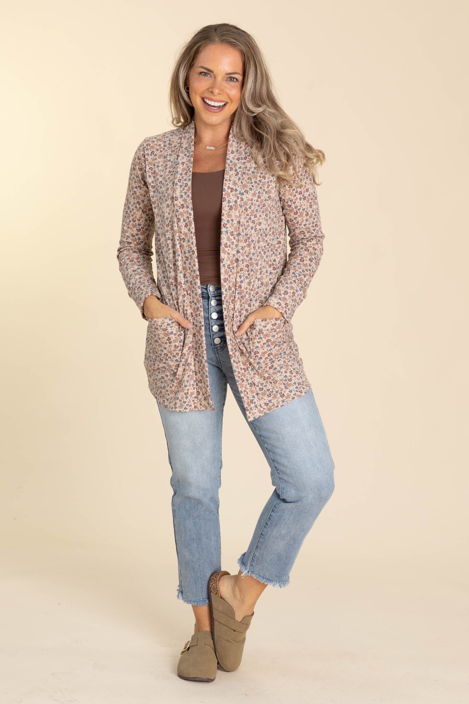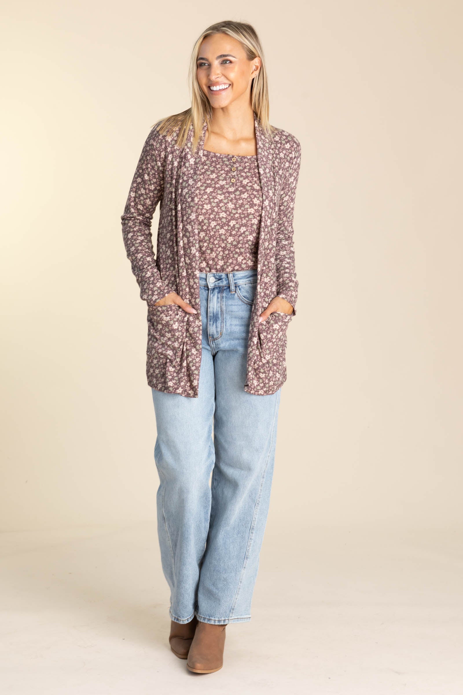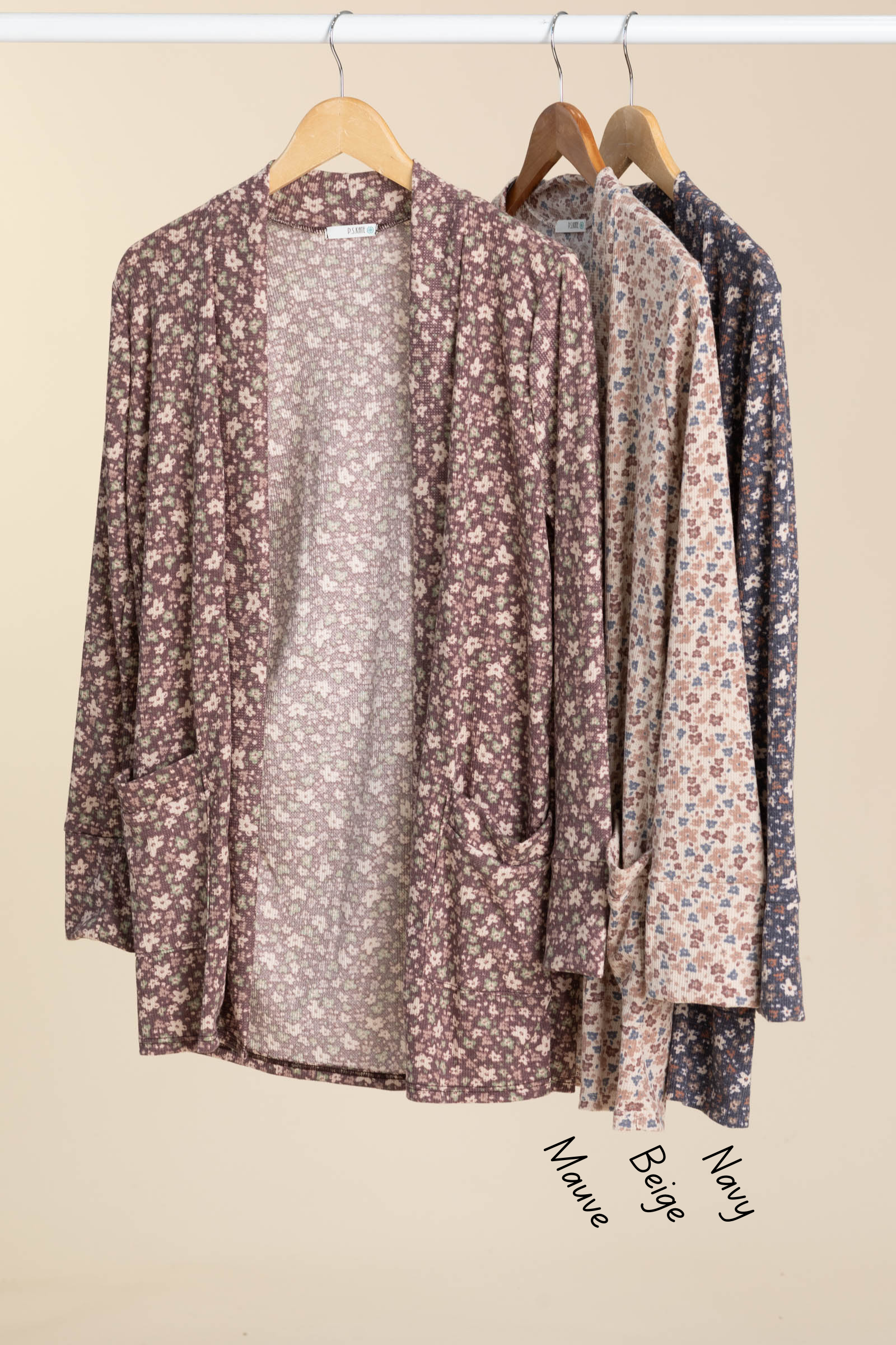 Floral Print Knit Cardigans With Pockets