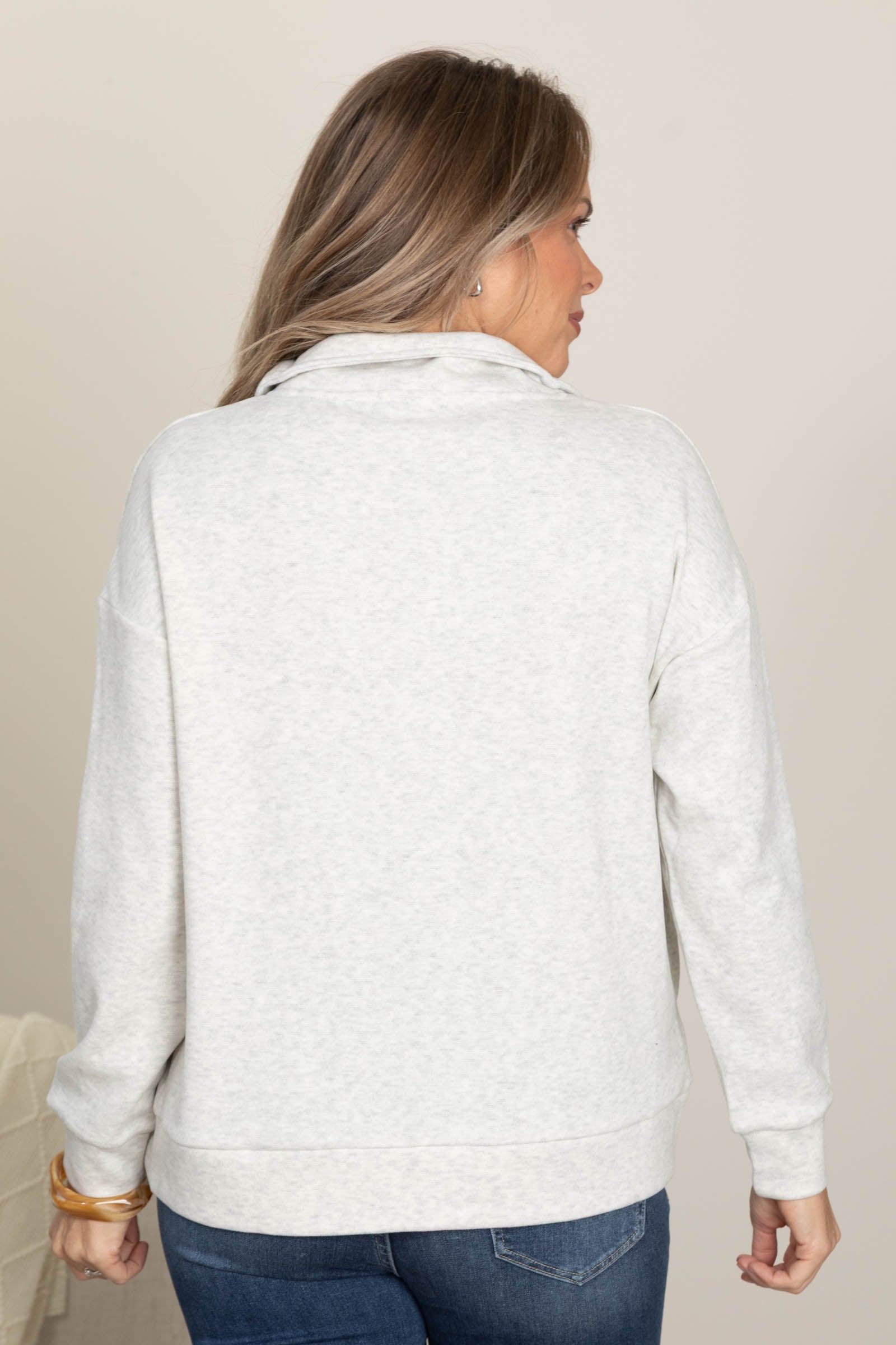 Heather Grey French Terry High Neck 3/4 Zip Up