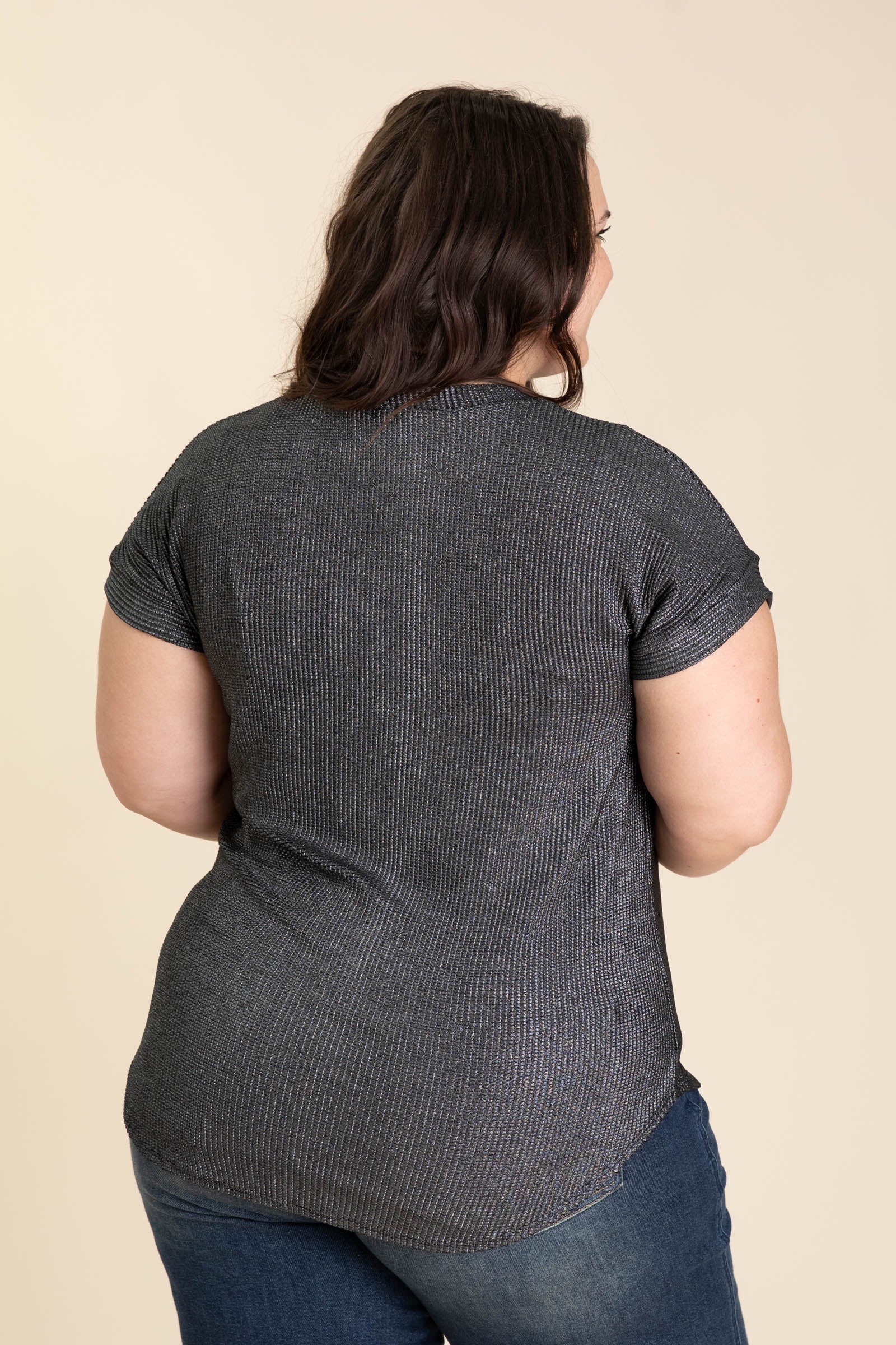 Metallic Black Cap Sleeve Textured Knit Top