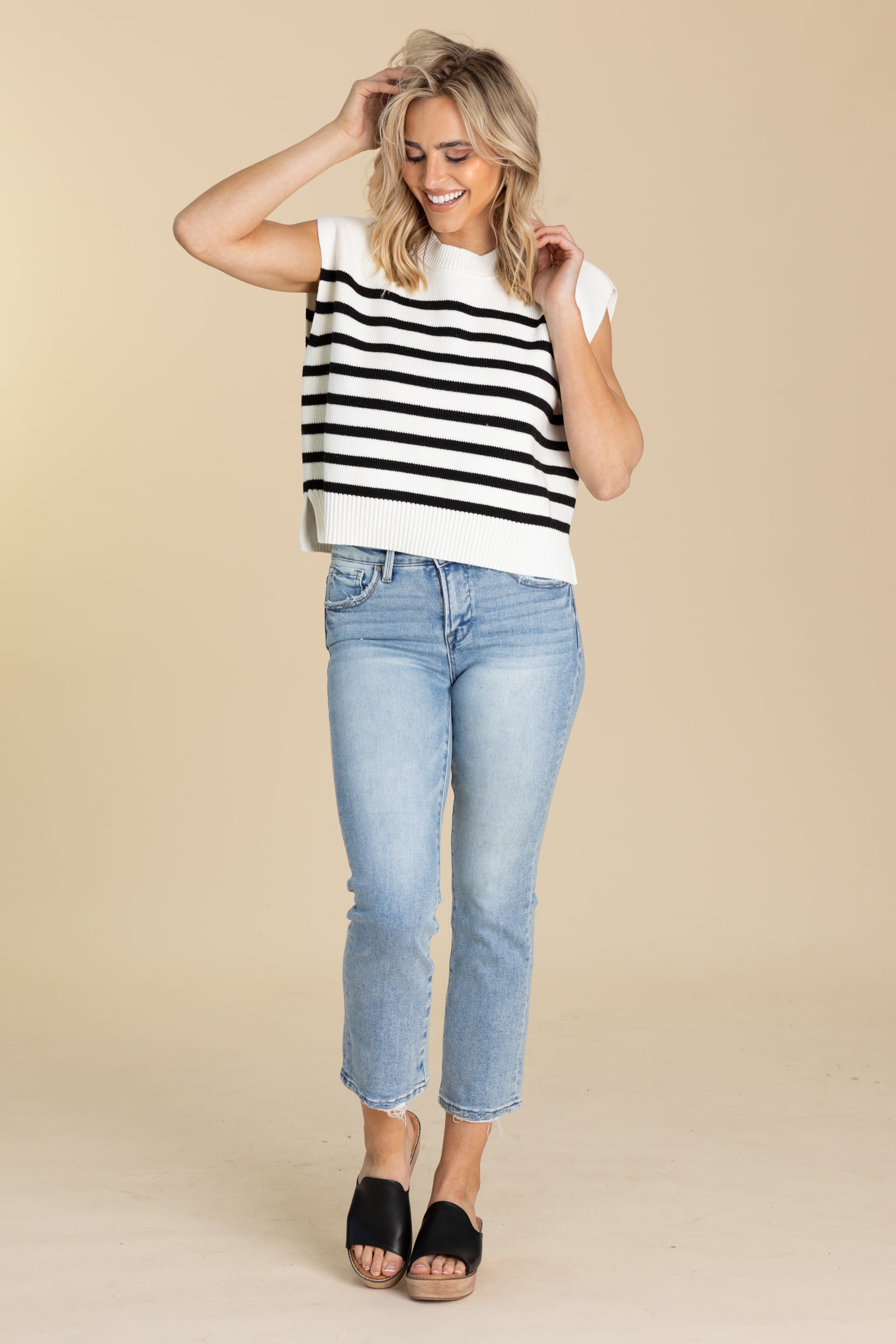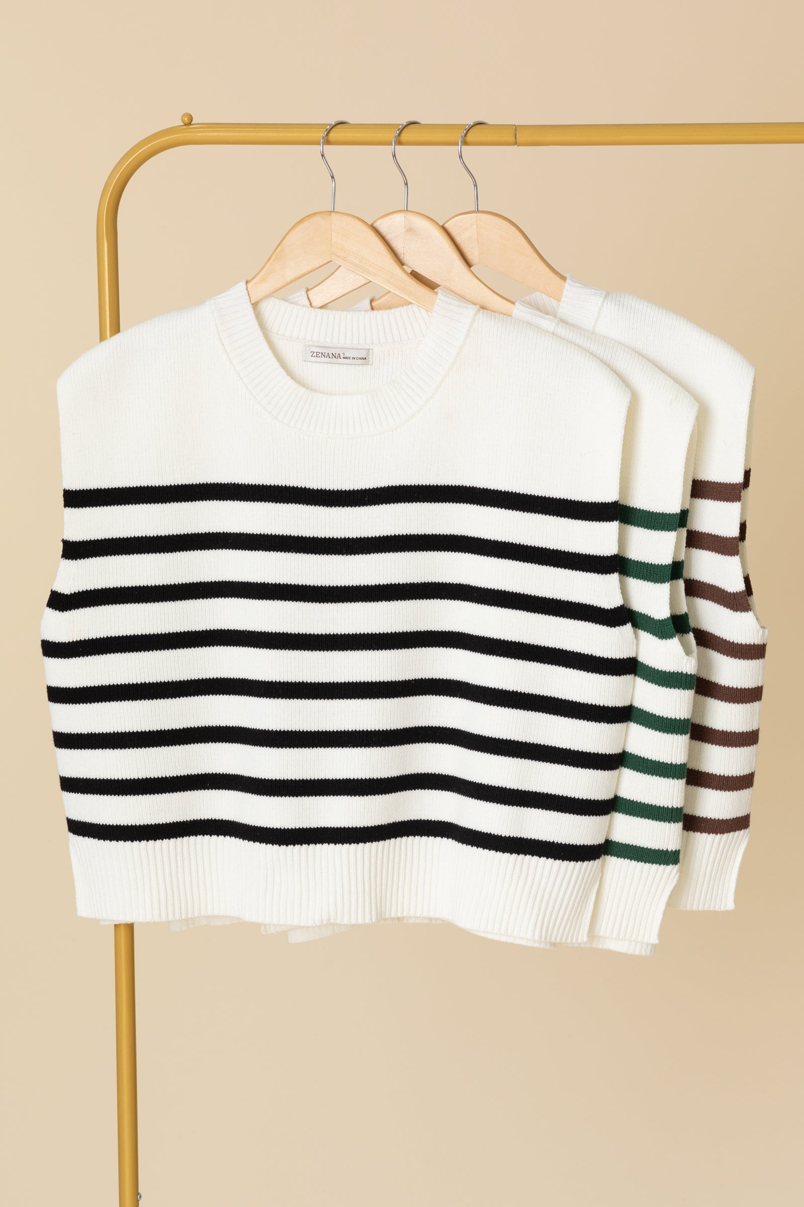Oversized Crewneck Stripe Cap Sleeve Sweaters