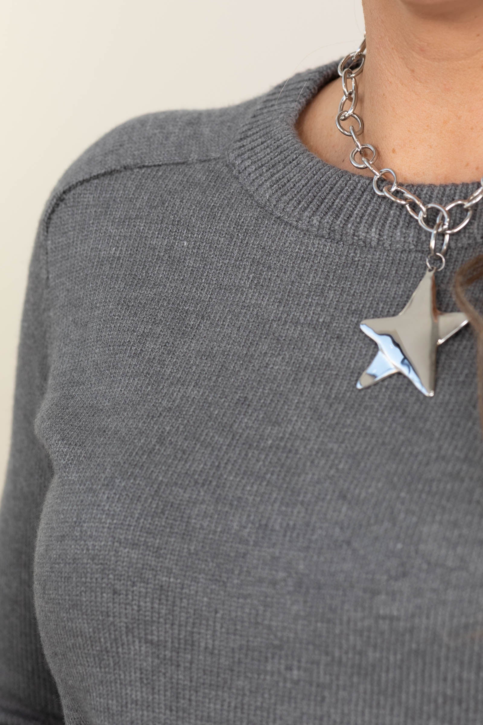 This sweater is designed to fit oversized. If you enjoy an oversized fit. purchase true to size. If you are between sizes and want a more tailored. fitted look purchase your lower size or one size down. For example. if you are size medium and want more fitted. purchase size small/medium. If you are size medium and want oversized. purchase size medium/large.