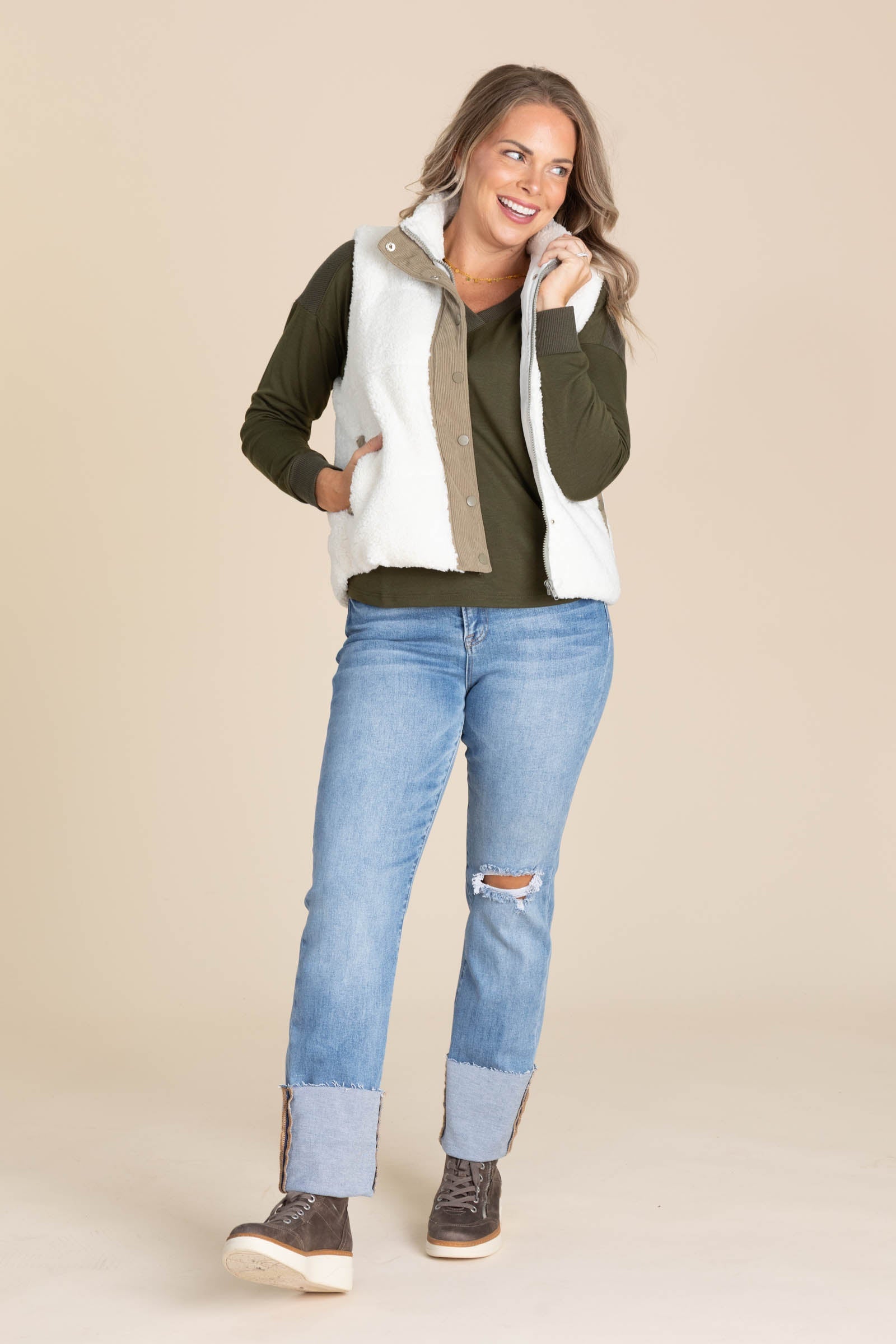 Risen Medium Wash Cuffed Straight Leg Jeans