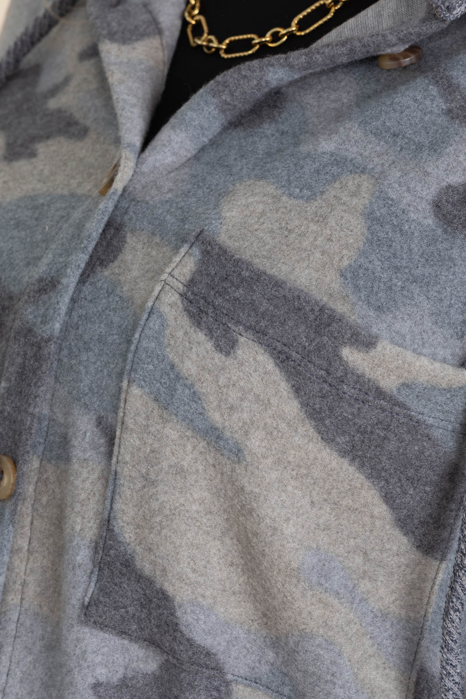 Soft Brushed Camo Print Hooded Button Up