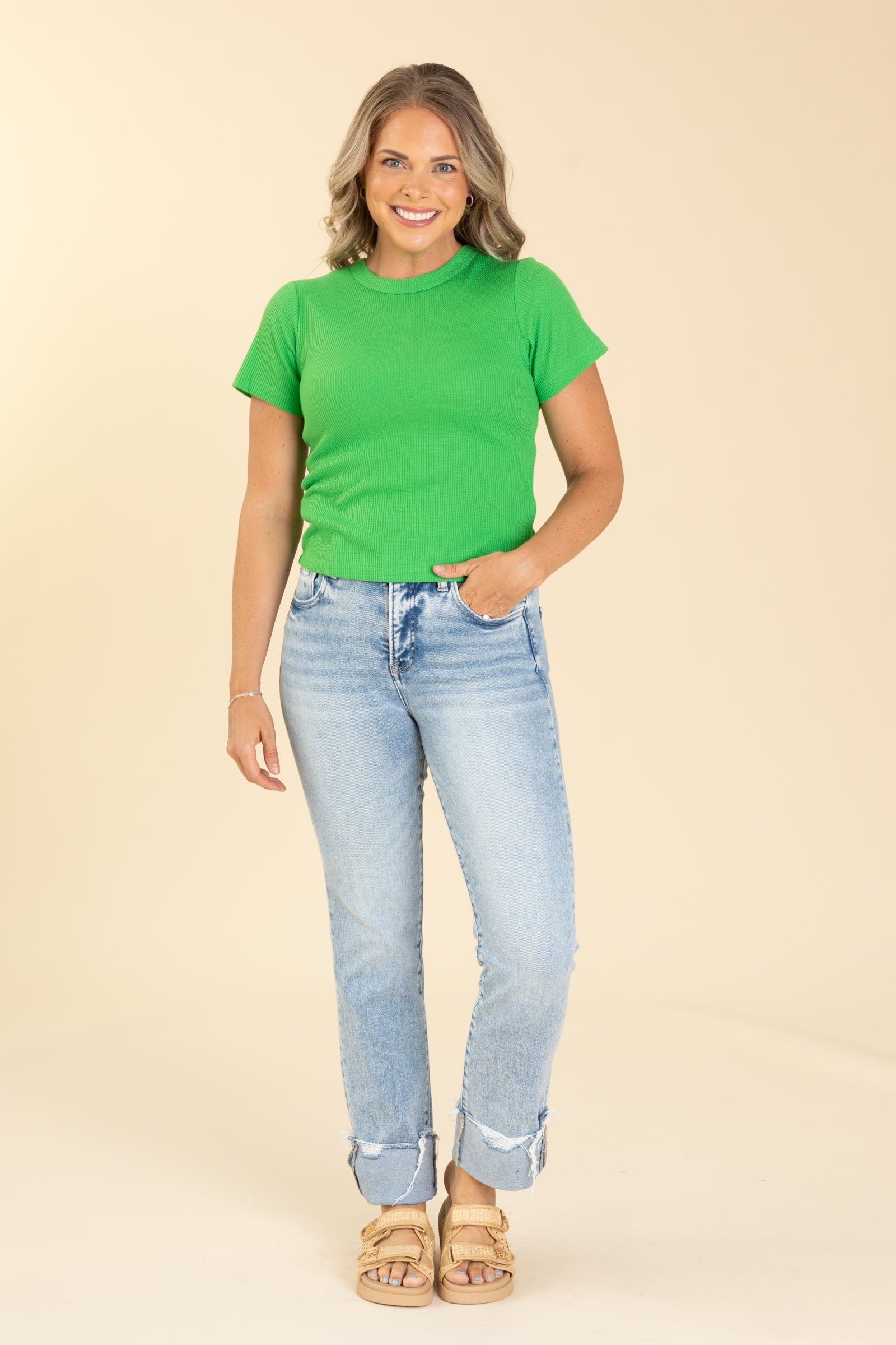 Soft Waffle Knit Slim Fitted Short Sleeve Tops