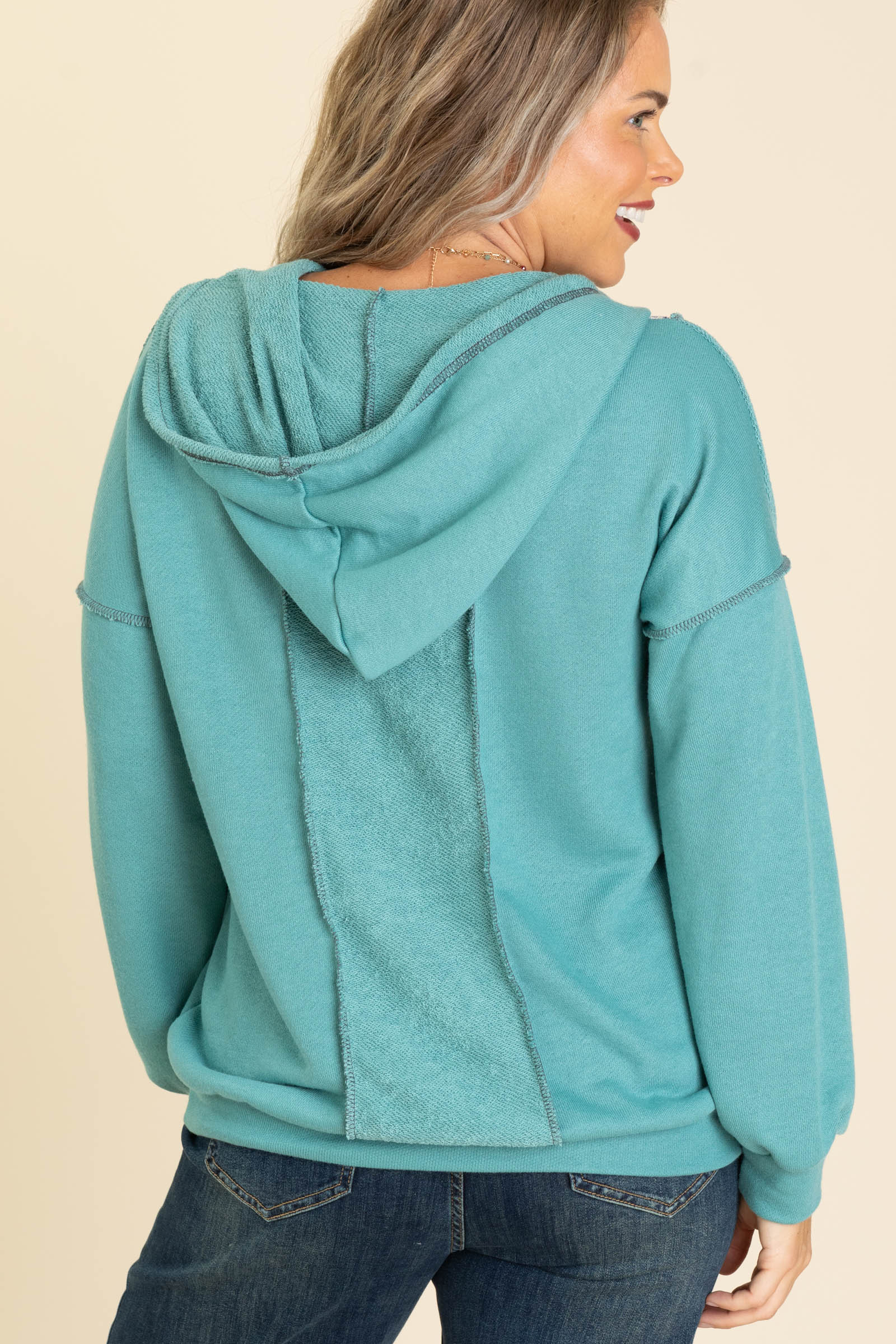 Teal Breezy Knit Long Sleeve Hoodie Top