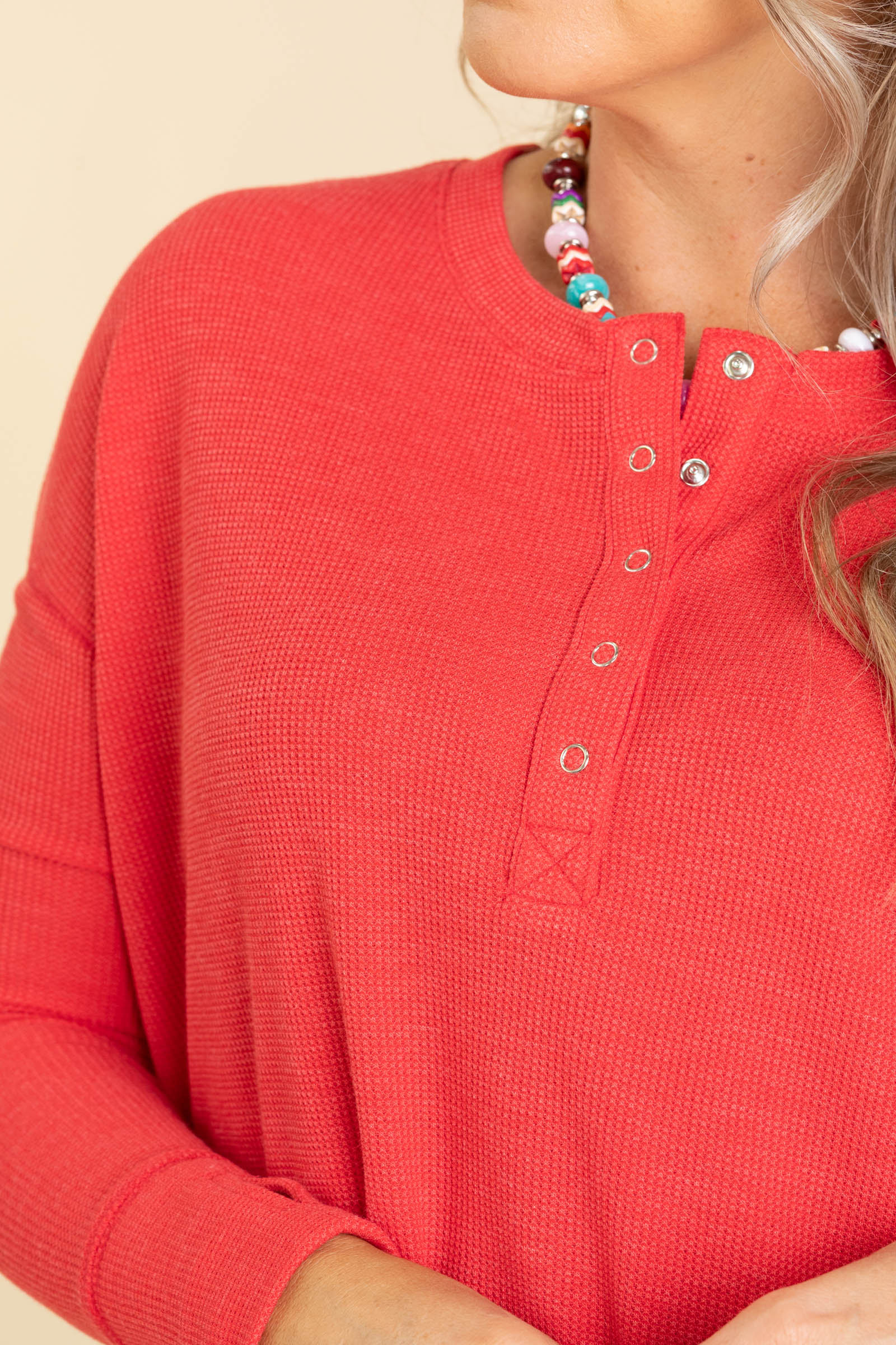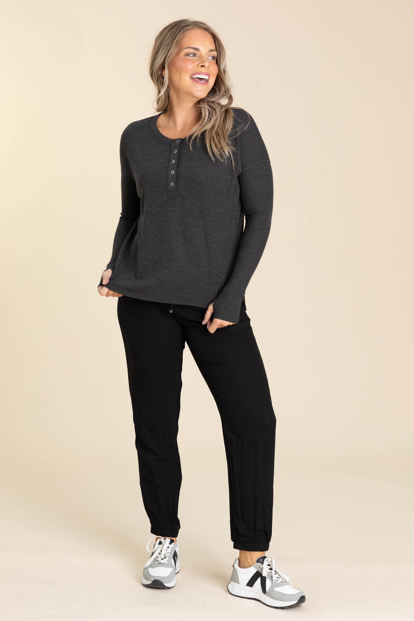 Waffle Thumb Hole Cuffs Henley Knit Tees